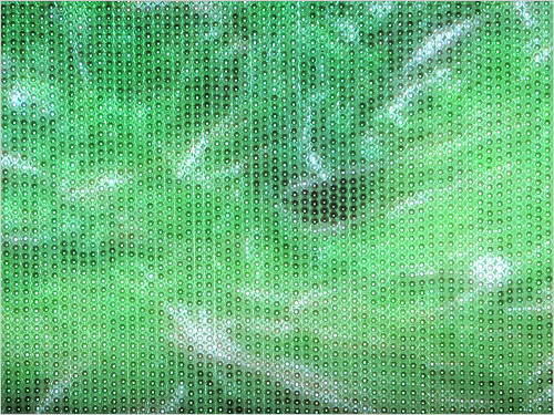 Looping video projection installation, with pixel-pearl screen and soundtrack, composed by Andrew Zealley.