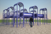 Daniel Young and Christian Giroux have been making art together since 2002. They produce sculpture, public art and film installations. Their work is the product of an ongoing conversation concerning the modernity of the mid-century, the production of space and the built environment. Young and Giroux rework modernist forms of abstraction using consumer goods and industrial prototyping methods, construction systems and componentry to produce sculptural objects that partake in contemporary architectural discourse. Their film works constitute a form of research on sculptural form in the built environment from the architectural to the domestic scale.