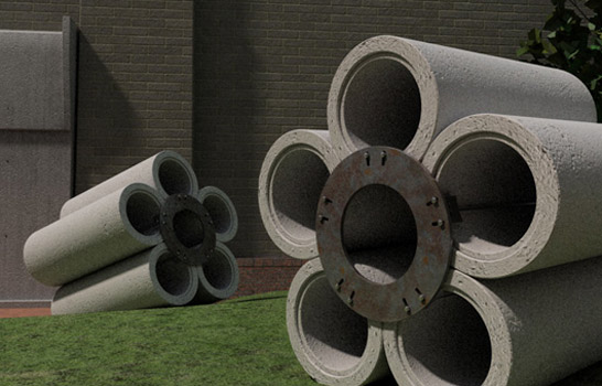 Digital rendering: concrete pipe, steel & components
