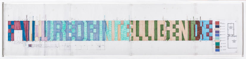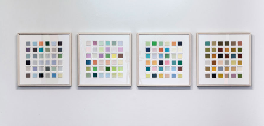 Working drawing, latex house paint on bond paper, coloured pencil and paint chips on graph paper