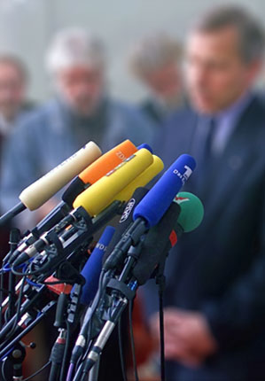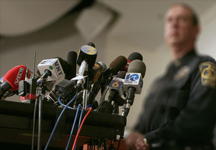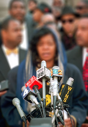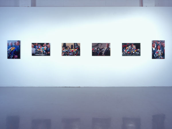 The Microphone Bouquet Series of digitally manipulated press photographs memorialize news conferences as sites of collective loss.