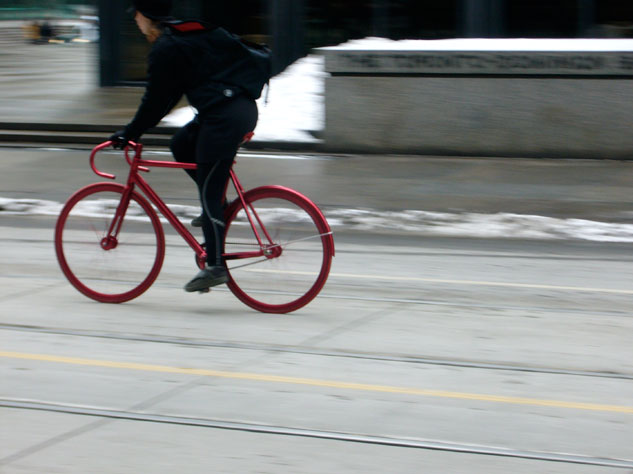 Custom red anodised courier bicycle