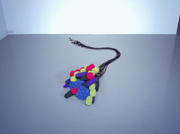 Anodised aluminum, foam, audio cords, acrylic paint