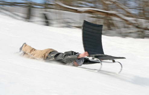 The PK20 video and photo series repurposes Poul Kjaerholm’s 1967 chair design as a sled used to traverse a Nordic landscape.