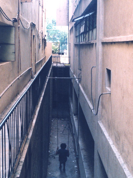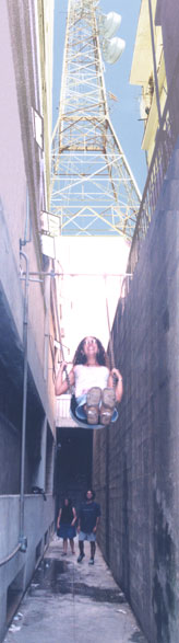 Space between buildings, swing seat, chain, aluminum tube, hardware