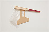 Her most recent sculptures, made of common building and impoverished materials, are precariously perched, sometimes leaning on a wall for support. These collage-like constructions include the space that surrounds them. Through a physical and involved working process, Pratt balances materials, ideas and space to formulate her work through a constant flow and accumulation of ideas. In addition, her use of common and readily available materials is contrasted with the permanence that is traditionally associated with sculpture. In this way, Pratt challenges assumptions about the inherent nature of her medium.