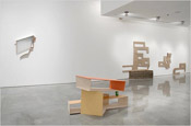 Elspeth Pratt’s sculptures demonstrate her interest in architecture and social spaces. She uses a variety of prosaic materials, from plywood to beverage containers, to comment on how architecture structures our lives. Throughout her career, she has shown an interest in public spaces such as shopping malls, gardens and train stations, as well as “pseudo-escapist” spaces such as spas, casinos and resorts. She has also explored airports and is interested in how they control our actions as we navigate them.