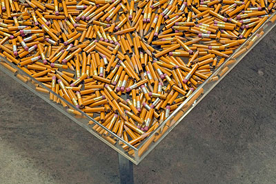 Modified pencils, plexyglass and glass cover on chromed base