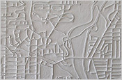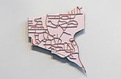 Flavio Trevisan works with various media to explore spatial conditions and architectural concepts. His recent projects represent an ongoing engagement with maps as a visual code and sculptural medium. His understandings of space and structure, arising as a result of his complex relationship with architectural practice, cause him to see the process of translating two-dimensional maps into sculpture as a way to appreciate the internal logic and progressive accumulation of our urban and suburban environment.