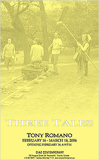Diaz Contemporary presents Toronto-based artist Tony Romano’s first solo exhibition with the gallery, Three Tales, comprised of a series of installation works—The Lost Rose (2004), The Fisherman and his Soul (2005), The Last Act (2006)—and an accompanying series of film stills and poster works.