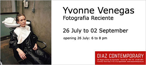 Diaz Contemporary is pleased to present young Mexican artist Yvonne Venegas’ first solo exhibition with the gallery. For Fotografia Reciente, Venegas shows a series of 25 colour images, framed in a contemporay Mexican style.