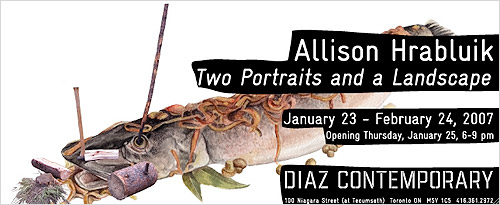 Diaz Contemporary presents the first solo exhibition of Allison Hrabluik with the gallery. An emerging artist actively exhibiting in Europe and Canada, Hrabluik will be showing new video, sculpture, and wall works for Two Portraits and a Landscape.