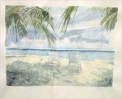 Screen Saver: Beach 01 - 2007 Watercolour on paper & archival tape 71" x 48"