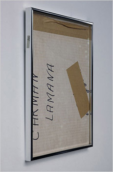 Carmen Lamana - 2007 Used aluminum frame, denglass, painted spacer & cardboard 11.25" x 15.25"