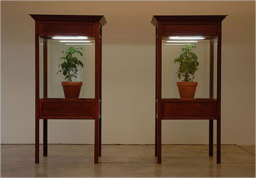 28 June to 28 July 2007 Tony Romano New Work 3/9 Tony Romano: Trial of Judas With Constant Reference to Dorothy Retallack - 2007 Two wooden cabinets, sound system, light fixtures & plants 84" x 36" x 24" each