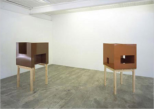 05 June to 05 July 2008 Christian Giroux & Daniel Young Boole/War Game 5/6 Christian Giroux & Daniel Young: Umbria & Sienna - 2008 Powder coated aluminum sheet and Ikea components 29" x 59" x 29" each