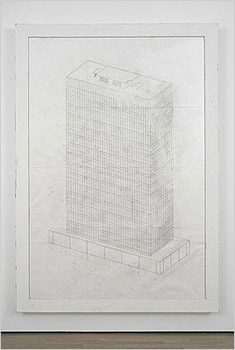 Curator - 2006 Graphite on paper, wood, paint & plexiglass 102" x 68" x 4"