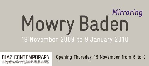 Baden received a Governor General’s Award in Visual and Media Arts in 2006. Mowry Baden gratefully acknowledges the support of the Canada Council for the Arts and the British Columbia Arts Council.