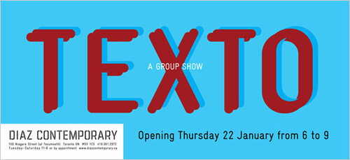Texto explores how artists use text in various media. The exhibition features a wide range of work by Deanna Bowen, Ricardo Cuevas, Joel Herman, Yam Lau, Ken Lum, Gordon Lebredt and Francine Savard. Together, this selection of photographs, drawings, prints and installations investigates questions of politics, identity, perception and the commercial dominance of words. Several of these works present text in familiar contexts such as books and storefront signage; by doing so, they make us question how we gather information, and which information to trust. These works demonstrate that the use of text, while perhaps a more direct method of communication than images, holds a reservoir of possible meanings.
