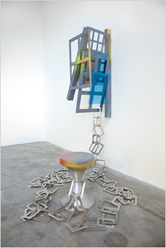 last time we stayed/TIME MUST HAVE A STOP aluminum, enamel paint, clear coat, plexiglas, + spun aluminum stool and aluminum chain variable dimensions 2009