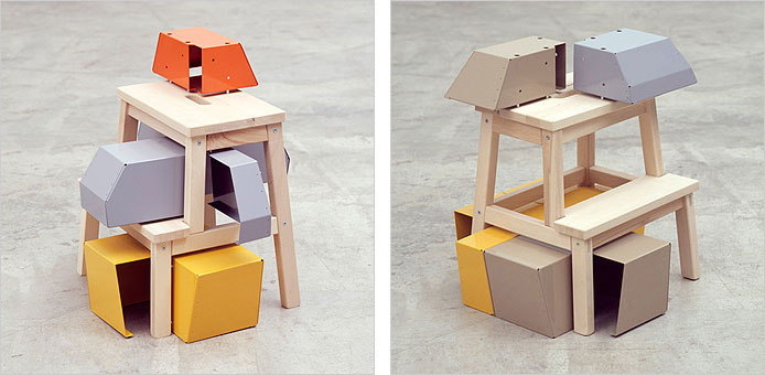 9 April to 15 May 2010 Christian Giroux & Daniel Young Beta Boole 9/9 Christian Giroux & Daniel Young Andersson B & Andersson E (detail views) powder coated aluminum sheet, Ikea and components 24” x 22” x 22” each series of 13 2009