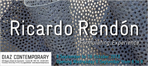 Rendón is interested in the tools and products of physical labour, construction and industry, and their relation to the meaning of work and to the creative process. He manipulates his materials into symbols that reflect the procedures they have endured, so that an understanding of the time and effort involved is part of the viewer’s experience. In the completed works, there is a preservation of the fleeting moments of their progressive development.