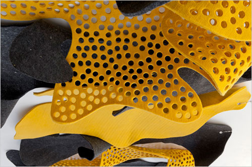 Ricardo Rendón Patrones de trabajo (estados de transformación) - detail Perforated industrial felt 12 pieces, 425 x 240 cm high each 2010