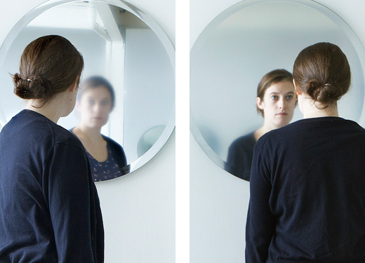 Corwyn Lund Vaseline Lens #1 (Self/Other) Low-iron glass, mirror silvering 2 pieces, each 28.5” diameter Edition of 3 + 1 AP 2011
