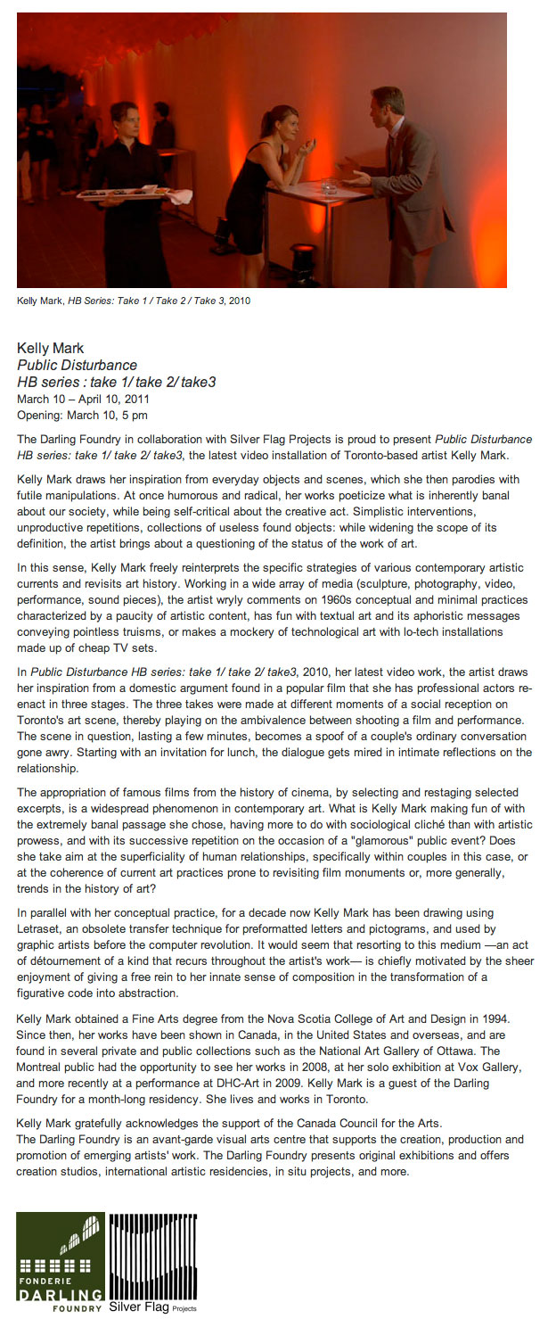 17 February to 19 March 2011 Kelly Mark Public Disturbance