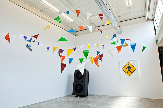 12 July to 18 August 2012 BGL Better Mistakes 5/10 BGL Festival Aluminum, steel, shoes, paint, rocks, with Speaker Fan, fans & MDF Speaker Fan dimensions: 60” x 25” x 30” Overall dimensions: 18’ diameter, 9’ height 2012