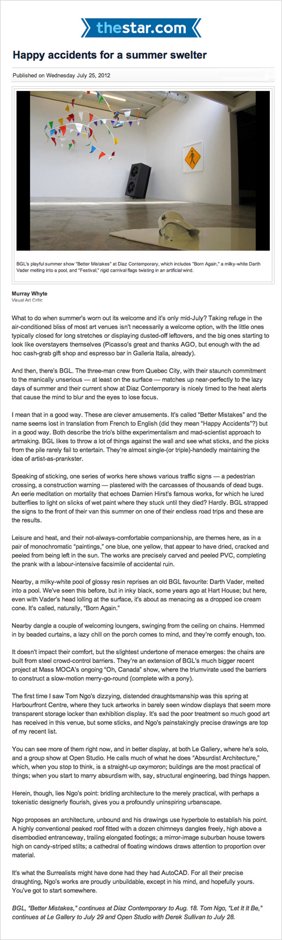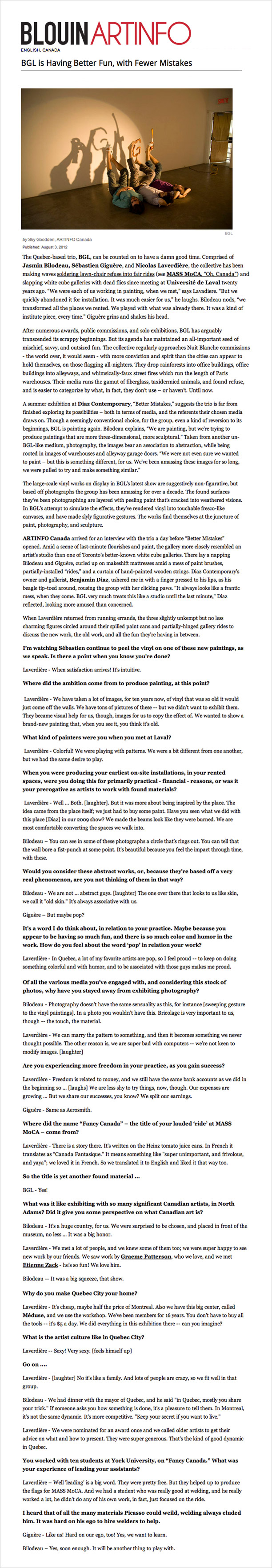 12 July to 18 August 2012 Opening Thursday 12 July from 6 to 8 BGL Better Mistakes