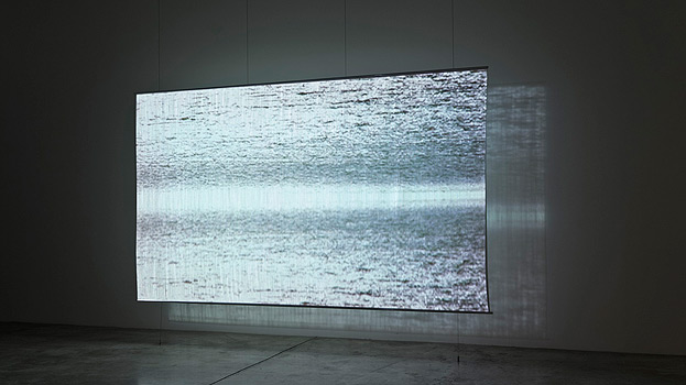 Projected onto 12’ x 7’ hand fabricated pearl screen, made of 500,000 4mm Japanese replica pearls and spring steel wire.