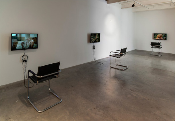 28 March to 27 April 2013 Aleesa Cohene I Told You That Might Happen 2/9 Aleesa Cohene I Told You That Might Happen 3 channel video installation, Mart Stam chairs, cotton shirts, scent, piece of meteorite 2013