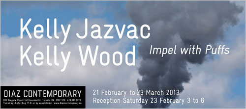 Diaz Contemporary is pleased to present Impel with Puffs, a new project comprised of two solo exhibitions: one by sculptor Kelly Jazvac, and the second by senior Canadian photographer, Kelly Wood. Although distinct, both solo exhibitions were developed as a dialogue between the artists. As such, they share the same name. Jazvac has exhibited with Diaz Contemporary since 2007 and this will be Wood’s first solo exhibition with the gallery.