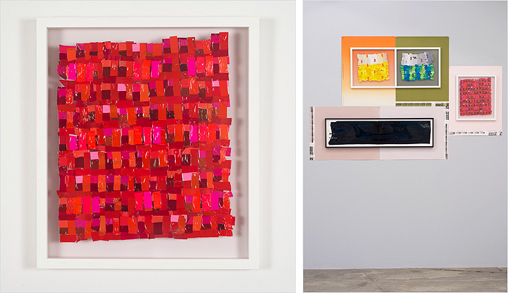 21 February to 23 March 2013 Kelly Jazvac Kelly Wood Impel with Puffs 11/24 Kelly Jazvac A Heavy Adhesive vinyl colour samples, double sided frame 17” x 15” x 1” 2012 Installation view of Impel with Puffs @ Diaz Contemporary, 2013