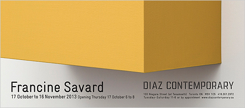 Francine Savard lives and works in Montreal. She has previously studied graphic design at the Royal College of Art in London UK and received her Masters in Visual Arts from Université du Québec à Montréal. Most recently, Savard has been featured in major exhibitions at the Musée d’art contemporain de Montréal, Galerie de l’UQAM, and the Musée national des beaux-arts du Québec. Her work can be found in numerous private and public collections including the National Gallery of Canada, the Albright-Knox Art Gallery in Buffalo, the Musée d’art contemporain de Montréal, the Musée national des beaux-arts du Québec and the Bank of Montreal.
