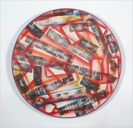 Your constant waterfall, Hornby Acrylic on canvas on aluminum, steel components 52" diameter 2012