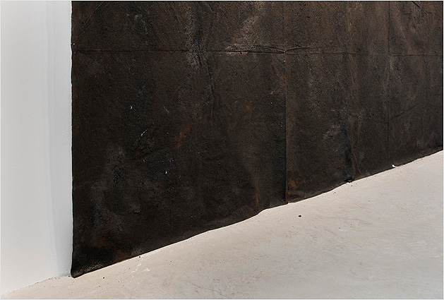 The Pliable Plane (detail) Tyvek, thread, oil paint, asphalt 10’ x 12.5’ 2014