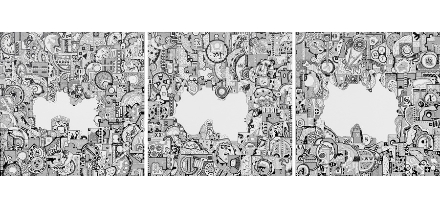 Bold 42Extra Light From the Letraset Drawing Series Letraset on archival mat board 24”’ x 72” / 3 @ 24” x 24" 2013