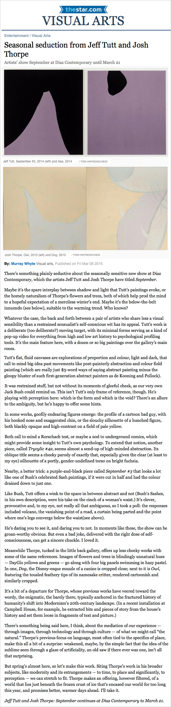 19 February to 21 March 2015 Jeff Tutt & Josh Thorpe September