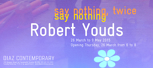 Diaz Contemporary is pleased to present a series of paintings and sculptures by Victoria-based artist Robert Youds. The six works that comprise the exhibition, titled Say nothing, twice, endeavour to create auratic aesthetic disruptures that are both novel and opaque. Blurring the lines among painting, sculpture and photography, Youds aims to engage a sense of optical consciousness through a seductive play of light, shadow and colour.