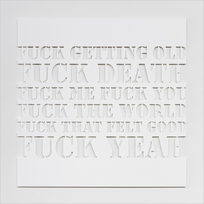 1 April to 30 April 2016 Kelly Mark Curmudgeon 9/26 Kelly Mark Fuck Yeah CNC cut sanded acrylic 36” x 36” x 0.25” Edition: 5 + 1 AP 2016