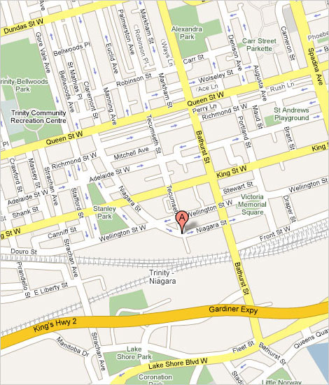 Walk south on Tecumseth for two blocks until you reach Niagara Street.